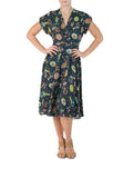 Blue Cherry Blossom Novelty Print Cold Rayon Bias Dress MASTER MEDIUM