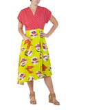 Red And Neon Green Polka Dot & Palm Tree Novelty Print Cold Rayon Bias Dress MASTER LARGE