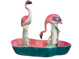 1950S Pink Art Deco Cermanic Flamingos In Pond Dish Sculpture