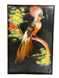 1950S Black Folk Art Mexican Feathercraft Bird Paintings With Wooden Carved Frame