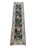 1980S Nude & Black Traditional Hand Stitched Asian Floral Runner Rug