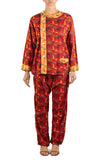 1930S Brick Red & Yellow Cotton Asian Novelty Printed Men's Pajamas