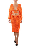 1960S Orange Hand Knit Wrap Top & Skirt Ensemble