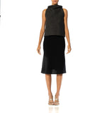 1990S GIANNI VERSACE Gray & Black Wool Nylon Open Side Top Skirt Ensemble