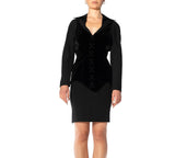 1990S THIERRY MUGLER Black Wool & Velvet Skirt Suit With Faux Laced Corset Detail