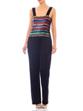 1970S Black Sequined Polyester Jersey Disco Party Jumpsuit With Vest