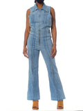 1970S Blue Cotton Denim Sleeveless Jumpsuit