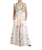 MORPHEW COLLECTION White & Green Organic Cotton Hand Embroidered Jumpsuit