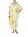 1970S Cream & Yellow Cotton Floral Print Kaftan