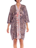 MORPHEW COLLECTION Violet Floral Print Japanese Kimono Silk Pink Detail Kaftan Short