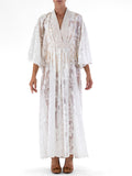 MORPHEW COLLECTION White Poly/Nylon Baroque Leaf Lace Kaftan