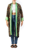 1920S Green & Black Rayon Rare Art Deco Tropical Print Kimono