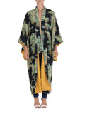 1940S Black Silk & Rayon Rare Tropical Print Kimono
