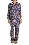 1940S Navy Blue Cold Rayon Rare Pirate Ship & Treasure Map Print Pajamas