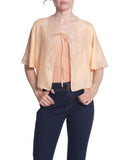 1930S Peach Silk Tie Front Bed Jacket With Embroidered Net Lace Trim