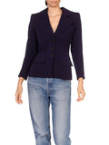 1980S YVES SAINT LAURENT Navy Blue Haute Couture Wool Wide Lapel Blazer
