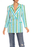 1990S ESCADA Blue & Green Striped Cotton Blazer With Gold Starfish Buttons