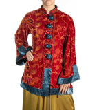 1990S Red Japanese Rayon & Silk Burnout Velvet Jacket