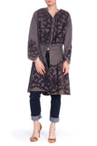 Victorian Grey Wool Coat With Velvet Scroll Appliqués
