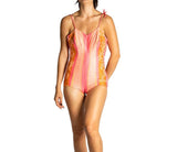 1950S Pink & Orange Cotten Sateen Nani Of Hawaii Sun Suit Swimsuit With Hibiscus Flowers