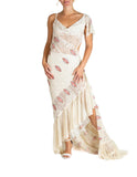 Morphew Atelier Cream Cotton / Rayon 1930'S Lace Gown With Slit & Ruffled Train
