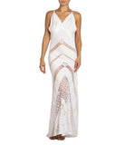Made from antique linen covered in hand embroidery and the lost art of pulled thread work. Hours upon hours were spent creating this lace like textile which we have draped on the bias to showcase the wonderful elasticity of the antique linen. The train is removeable and can be worn reversed as a cape or shawl.