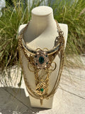 MORPHEW ATELIER 1960S Emerald Broach With Multi Level Chains Choker Necklace