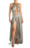 MORPHEW ATELIER Dusty Aqua Blue Silver Lamé & Metal Mesh Chainmail Gown
