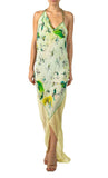 MORPHEW ATELIER Green & Yellow Tissue Silk Scarf Dress With Crystal Straps