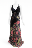 Navy Blue & Pink Silk Chiffon & Lace Gown with Velvet Floral Appliqué Size 4