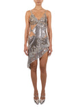 Silver Deconstructed Punk Metal Mesh & Lace Crystal Studded Cocktail Dress