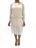 1920S Sheer Cotton Boho Folk Dress With Yellow Hand Embroidery & Smocking