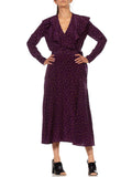 1930'S Eggplant Purple Silk Crepe De Chine Victorian Style Long Sleeve Dress With Sash Belt & Ruffled Collar