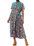1950S Pink & Blue Floral Cotton Wrap House Dress XL With Pockets!