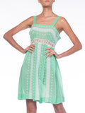 1960S Mint Green Cotton Blend Dress With Eyelet Lace Style Embroidery