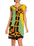 1970S COLETTE NIVELLE Yellow Orange & Blue Nylon Hand Knit Giraffe Dress