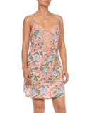 1990S Pink Floral Rayon & Nylon Lace Chiffon Dress With Sheer Front Panel Low Back