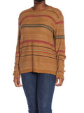 1990S POLO RALPH LAUREN Caramel Brown Linen Blend Knit Serape Stripe Sweater
