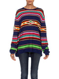 1990S RALPH LAUREN Multicolor Striped Silk/Cotton Blend Hand Knit Native American Inspired Sweater