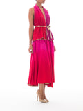 1970S GIORGIO SANT'angelo Pink & Purple Wool Jersey Ombré Dyed Halter Top Skirt Gown Ensemble With Gold Lurex Trim