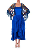 Blue Silk Charmeuse & Chiffon Dress With Antique Lace Sleeves