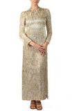 1960S White Silk Chiffon Empire Waist Gown Covered In Gold & Silver Beaded Fringe
