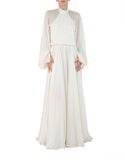 1970S Pearl White Silk Chiffon Couture Detailed & Beaded Gown With Blousy Sleeves