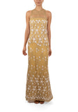 1990S Metallic White & Gold Silk Blend Lace Gown With Appliqué Flowers