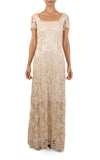 1990S Pearl White Beaded Silk & Lace Titanic Inspired Empire Waist Gown With Short Sleeves