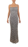 1990S Silver Hand Beaded Rayon & Silk Chantilly Lace Gown