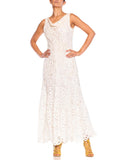 1990S White Hand Done Cotton Blend Battenburg Lace Cowl Neck Gown With Low Back
