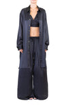 MORPHEW COLLECTION Black Silk Charmeuse Oversized Button Down Shirt Dress