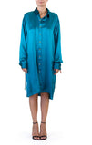 MORPHEW COLLECTION Lyons Blue Silk Charmeuse Oversized Button Down Shirt Dress
