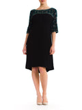 1960S Black Silk Mousseline Cocktail Dress With Emerald Crystal Beaded Sleeves